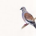 Testét toll borítja, melynek színe az oldalán szürke vagy barnásszürke, a hasán világos, fehéres szürke. Az alsó faroktollak és a far fehér színű. A lába bőrszínű csőre pedig narancs.